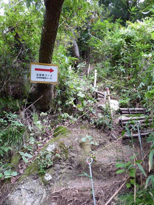 ロープウェイの右手の道を進んでいくと北尾根登山道の分岐があります