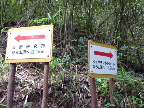 ここでダイトレへのルートと、自然研究路・自然観察路とが分かれる