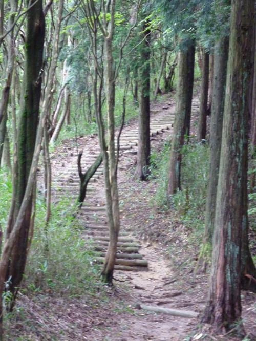 ケーブル駅の横から大和葛城の斜面をくの字に登って行くと、斜面に生い茂る笹の中で