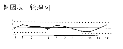 図です。この管理図に継続的に取得したデータをプロットしてゆくことで、データの