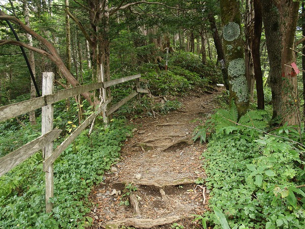 ここからは樹林帯の中の急な登りが続きますが、登山道はよく整備され