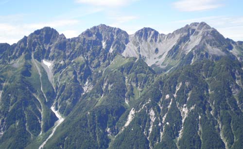 左から 前穂高岳 奥穂高岳 涸沢岳 北穂高岳