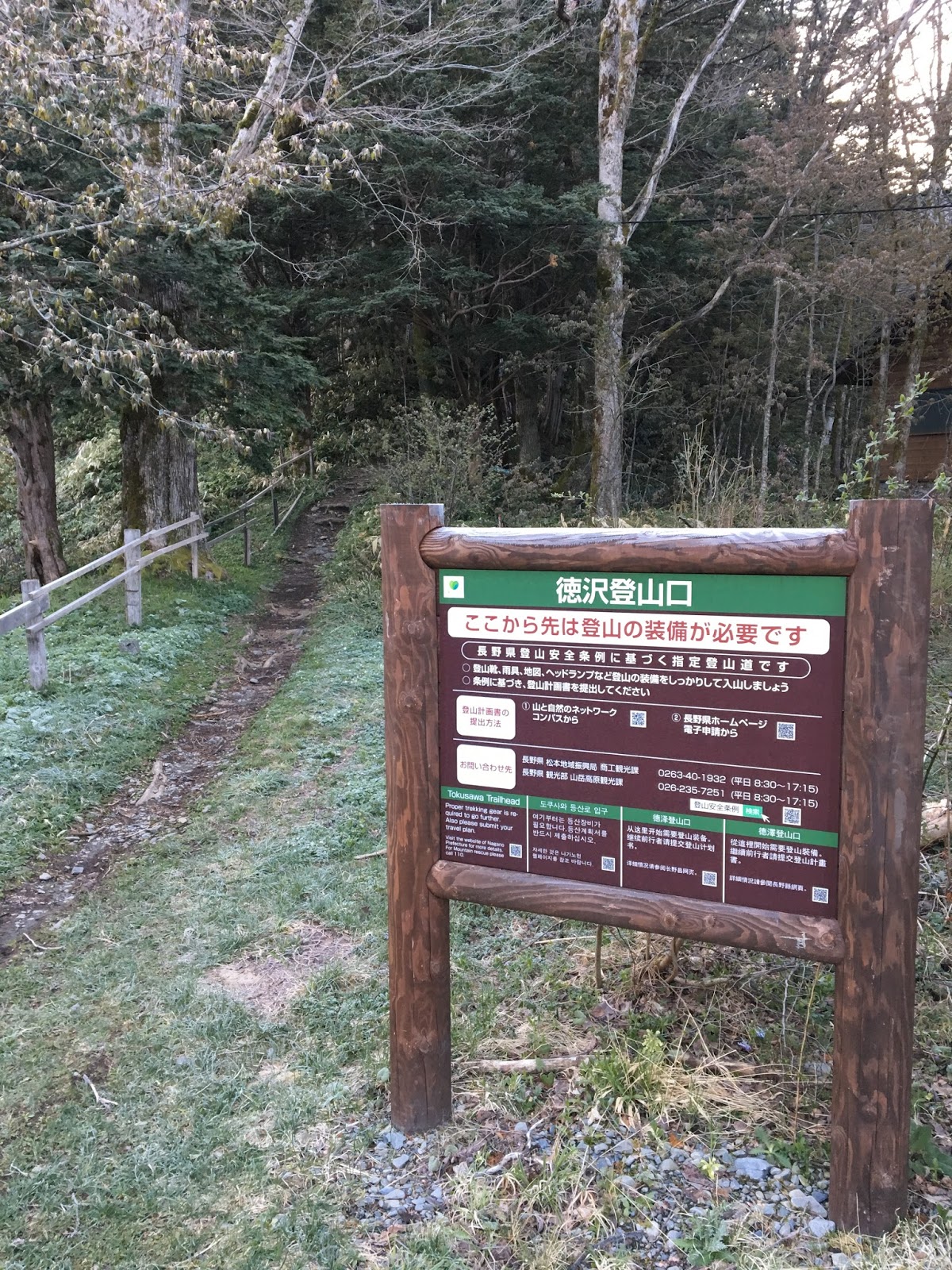 徳沢園の右側に長塀尾根の登山口を示す大きな指導標が立っていました。