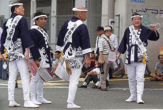 各方面から沢山の人々が集い、だんじりが曳行する道路の交通規制を協働する