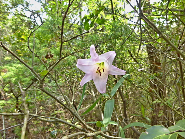 坂道を上がったり、細く足場の悪いユリ道を進んだりしながら登って行きます。