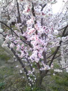 豊後梅が、枝に隙間無く花を付け見事に咲いており、名もない里山に春の息吹を見つけました。
