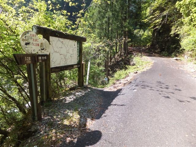 白倉又谷を橋で渡ると林道ゲートの手前にでる。