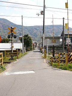 長田駅のプラットフォームを降りて、すぐ近くの踏切を超えて紀ノ川へ伸びる道