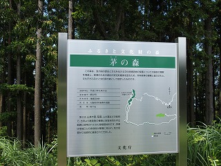 この一帯はまさしくカヤトの丘である。文化庁が「茅の森」の解説板を設置している。