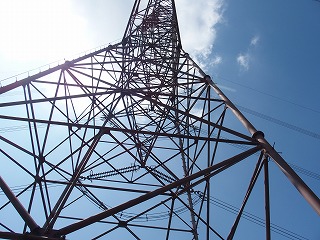 送電線路に沿ってジグザグに下りて行く。このルートも途中何カ所かにベンチが設置されていて、