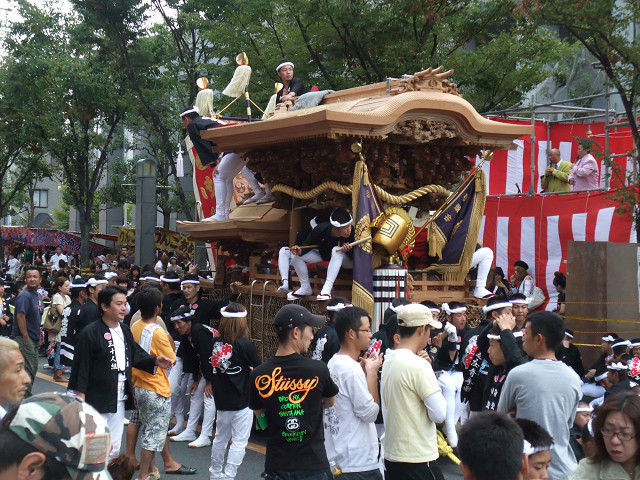 がきの頃からのビジョン 小学校の低学年だった頃、そう、モーターリゼイション到来以前、秋祭りの宮入後に、 泉佐野駅までだんじりを曳いて行き、駅前にだんじりを置いて休憩し、大人達は、 それぞれ映画館や飲み屋等のアミューズメントに向かい、秋祭りは、泉佐野駅前で 事実上終わり、子供達は、自宅までてくてくと歩いて帰りました。 翌朝、祭礼責任者が、牛にだんじりを曳かせ、だんじり小屋まで持って帰るのが お約束でした。まことに、交通規制なしでいけいけどんどんであり、 やりぱなしの長閑な秋祭りでした。 がきの頃に秋祭りで泉佐野駅前への曳行という思い出を持った、少年はやがて成人し、 町代表の祭礼委員とし、祭礼委員会に参画、各町の代表が集う祭礼委員会が開かれ、 円卓会議の席上で幼い頃から暖めていた、泉佐野駅前への連合曳と云う、 ビジョンを掲げ、実現に至る手順と道筋を、祭礼委員会の場で熱く語り、 出席者から、やんややんやの喝采と拍手で趣旨への賛同を頂き、 駅前パレードへの計画は動き出しました。 中庄代表の祭礼委員が、泉佐野駅前パレードという、がきの頃からひそかに 暖めていたビジョンを、6町祭礼委員会の場で承認を頂き、ビジョンから 目標を掲げ、実現へ向けて動き出した瞬間でした。 ![]() ![]() |