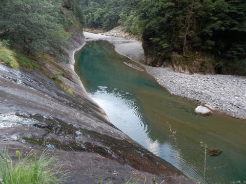 ここから登山道はやや高い場所を通り再びシシ淵で河原に降ります。