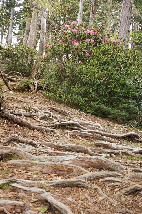 最後の急登。根張りとシャクナゲです。