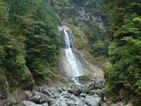 日浦杉吊橋から20分程で最初の大滝、千尋滝が現れます。